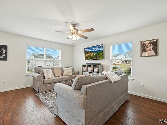 Welcome to this beautiful Eureka home in the highly sought-after Windswept Farms community! Just 4 years young, it blends modern style with everyday comfort in a picture-perfect setting. The charming covered front porch and custom front door make a warm first impression. Step inside to an open, light-filled floor plan where large windows create a bright and airy atmosphere. The kitchen takes center stage with sleek 42" white cabinetry, stainless steel appliances, and a breakfast bar—ideal for both everyday meals and entertaining. Upstairs, retreat to the spacious primary suite with a walk-in closet and private bath. Two additional bedrooms, a generous hall bath, and a convenient laundry room complete the upper level. The lower level is a blank canvas with bath rough-in and egress window ready for your finishing touch. Outdoors, relax or entertain on the patio overlooking the level backyard—perfect for BBQs, gardening, or play. With low-maintenance living, stylish updates, and a prime location near top-rated schools, shopping, dining, and parks, this home truly checks all the boxes. Don’t miss this opportunity in one of Eureka’s most desirable communities!