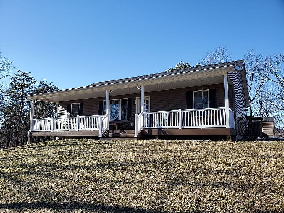 2 bedroom stick built rancher with a laundry room on the main floor. Mostly finished basement. Heat pump for your heat and AC. It's a nice house with a spacious open floor plan. Plenty of closet and storage space throughout the house. Roundabout driveway with trees around the house for your privacy. The shed is 12 by 24 and is sitting on a 12 by 30 concrete slab. It's almost a mile off of baker hollow road with a newly paved road leading to the house. It is in a development and the dues are $200 a year.
