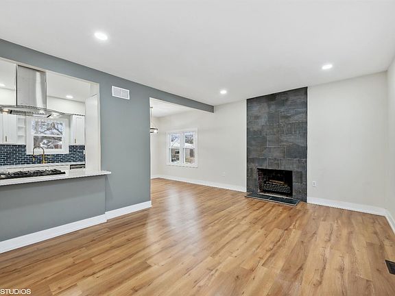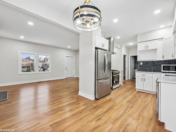 COMPLETELY REMODELED! Located in an established neighborhood, this updated ranch home offers impressive finishes. As you enter the home you will notice the 9 foot ceilings, fireplace and open concept kitchen/living & dining. The elegant kitchen boasts white cabinets with gold hardware, beautiful quartz countertops, stainless steel appliances and blue tile backsplash. There are 2 guests rooms with full guest bath There is a master suite with large walk-in closet with barn door and private bathroom. The basement has a finished rec room and adjacent laundry room with plenty of room to build out for additional living space. The private rear yard is fenced and provides access to the garage. Close to South Shore Line and Expressways. Schedule your showing today.