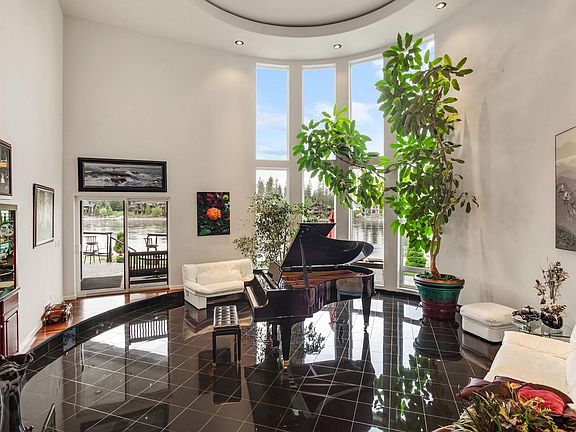 There is nothing ordinary about this stunning contemporary, Spokane River water front home. The extraordinary features makes this unique property stand out. Not only does this home have a 6 car garage with heated floors; it also has an amazing 45x65 shop, heated floors, apartment backing onto deep water canal with large boat access. This is a car/boat collectors dream. The architecture and high end construction is obvious. Attention to detail & amazing custom features makes this home & amenities outstanding