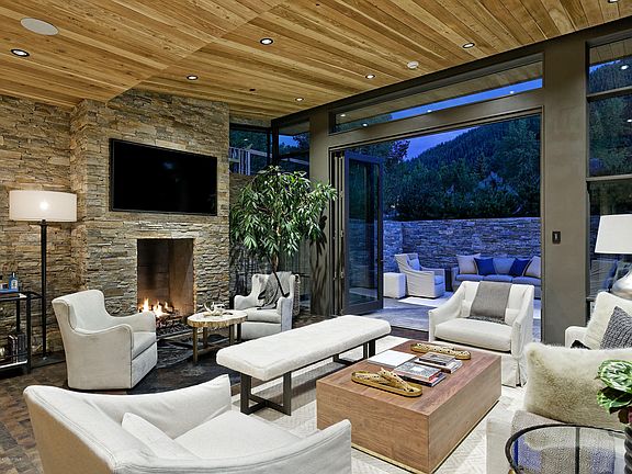 Priced to sell this summer! This brand new, single-family home on Riverside Ave is perfectly positioned to maximize sunlight, Aspen Mountain views, and the rolling sounds of the Roaring Fork River. Surrounded on three sides by open space, this lot is protected from future development. Just three blocks to city market, a short stroll to all downtown Aspen has to offer. This Bowden Home has it all, with over 5600 sf of heated living, 5 bedroom suites, 7 baths, open floor plan for great entertaining, and a huge media room with custom bar and game area - all wrapped in warm, Aspen modern interiors.
