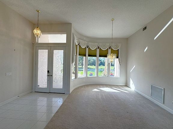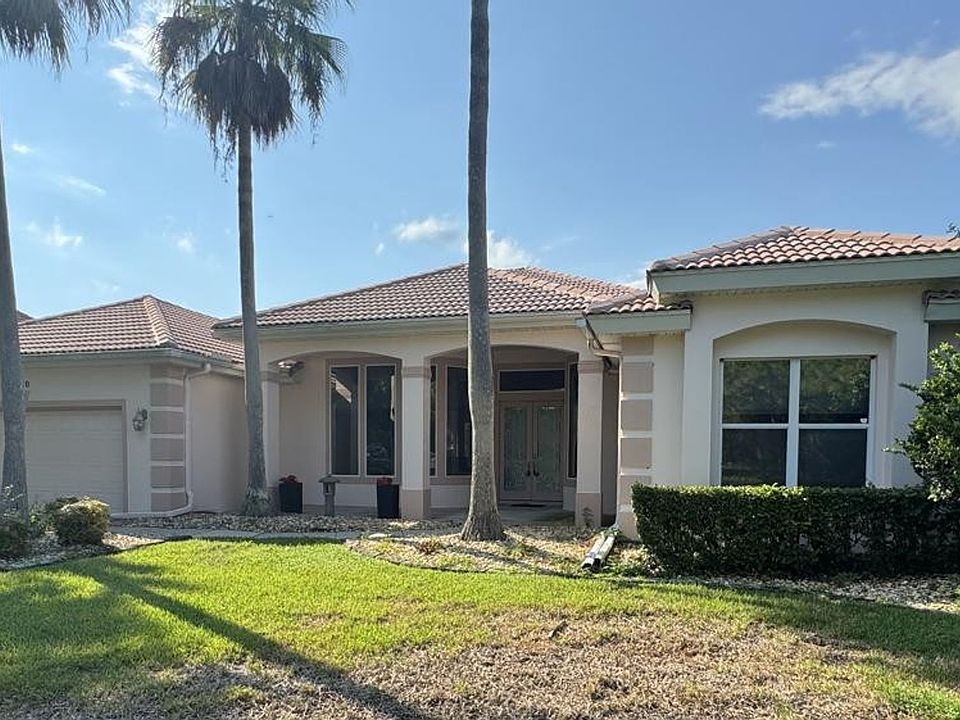 This 4 bedroom, 3 bathroom pool home is in the gated community of Pelican Bay. This home features over 2600 sq ft of living space with a split floor plan. As you enter into the formal living and dining area, you will first notice the screen enclosed pool through the large windows. The spacious primary bedroom is located off the hall to the right and has a large ensuite bathroom and private access to the lanai. The ensuite bathroom features your large walk in closet and a separate tub and shower. There is also a guest bedroom with built in desk and murphy bed on the other side of the hall, along with a full bathroom. The updated kitchen is situated in the middle of the home with a large island, Corian countertops and opens up to a family room with a fireplace and breakfast nook with views of the pool. The hall off the kitchen is where you will find the other 2 bedrooms and 3rd bathroom. The large lanai and screened in pool are great for relaxing or entertaining. Pelican Bay is conveniently located close to I-95 and I-4 for those who might travel for work.