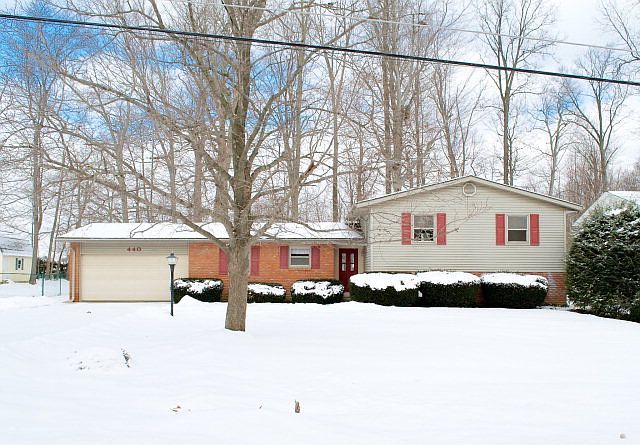O - H! Buckeye fans will love this house! Wonderfully spacious rooms define this 3 bedroom / 2.5 bath split-level home that is nestled at the end of a quiet street surrounded by lovely mature trees. Many recent updates include fresh interior paint, new plush carpeting, updated lighting, and updated electrical. Attractive fireplaces warm both the large living and family rooms and a huge Ohio State themed game room with wet bar offers even more entertaining possibilities. In warmer weather, the rear patio overlooks the deep, wooded lot and offers a gas line for your grill. Three nice sized bedrooms including a master suite with private, updated bathroom and double closets.