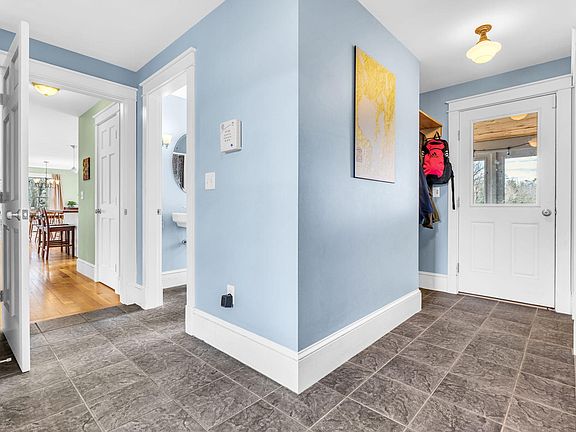 Nestled in a bucolic countryside setting within the coveted seaside town of Yarmouth, this 4-bedroom, 4-bathroom home is the perfect balance of classic simplicity and practicality. As you turn onto this quiet country road you will instantly feel at ease. The home features a spacious attached garage that leads to a functional mudroom, laundry room, and a full bathroom. Additionally, the mudroom connects to a delightful screened-in sun porch. Moving through the mudroom, the kitchen features a large pantry, black granite counters, custom cabinetry, and a gas range. The kitchen opens up to the dining and living room areas, with a private den that completes the first floor. Upstairs, the primary suite has a large walk-in closet, and two more spacious bedrooms down the hall. The 3rd floor is home to an oversized bedroom and a flexible rec space. Outside, the house blends seamlessly with the surrounding landscape, offering fantastic outdoor living and entertaining areas. The property also includes features a fully renovated barn, which can be utilized as a retreat or for storing horses/livestock. The massive attached garage offers ample room to park your vehicles or store your boat. This home comes equipped with environmentally-friendly amenities such as 40 solar panels, heat pump water heater, 6 heat pumps for comfort, an EV charger, and a standby generator. Located in a prime Yarmouth location, just a 1/3 mile to Main street, a short distance from recreational water and walking routes, and under 15 minutes away from Portland. Don't miss out on the opportunity to make this your dream home.