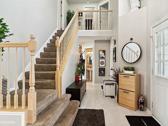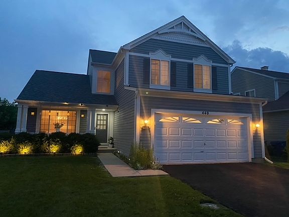 Now staged! Move right into this 3+1 bed, 2.5 bath two story home offering an abundance of indoor and outdoor space. Updates throughout the home include: new roof in 2016, new water heater, new dishwasher, new disposal, new modern light fixtures and fans in all rooms, new bathroom faucets and a Ring home alarm monitoring system. Experience seamless living with an open concept living and dining room. Vaulted ceilings add a sense of spaciousness to the home while picture windows allow natural light to pour in. The heart of the home is the eat-in kitchen which opens to the family room; the perfect spot for friends and family to gather throughout the day. Kitchen features include stainless steel appliances, granite countertops and backsplash, crisp white cabinetry, a large peninsula with bar seating, a pantry closet, a coffee bar, and breakfast nook. A fireplace anchors the family room, and adds a layer of warmth and coziness in the cooler months. Sliding doors lead out to a raised deck and fenced-in backyard. A laundry room and half bath complete the main level of the home. Rest and relax in an expansive master suite with vaulted ceilings, a walk in closet, and a large en-suite bathroom featuring a soaking tub, separate shower, double sinks and skylight. Two good sized bedrooms that share a full hallway bathroom complete the upper level of the home. The fully finished English basement receives great natural light throughout the day and offers space for recreation and entertainment, a fourth bedroom and storage. Attached 2 car garage. Steps to neighborhood parks. A short drive to Villa Olivia Recreation Center, downtown Bartlett and its Metra station.