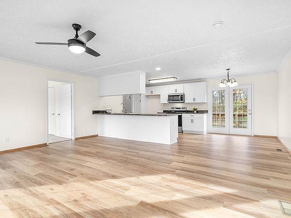 Soak in rural living! This home is sitting on 3.84 acres. It has a new roof and is freshly landscaped. Step into a spacious and freshly painted open concept living space. This home boasts of all new paint, carpet in all bedrooms, waterproof laminate in the main living areas. New kitchen cabinets, countertops, stove, microwave, dishwasher, light fixtures throughout, and new toilets and shower fixtures. Walk outside through the new back door onto a large deck, with stairs on both ends of the deck. A large outdoor space awaits and a fence area.