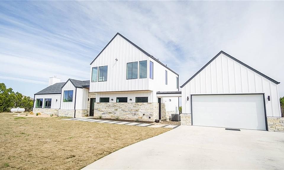 Stunning modern farmhouse style home on a one-acre lot with additional shop/mancave. 4 bedroom, 2-1/2 bath, flex room/office, master down, fireplace, loft area, grand foyer, vaulted ceilings & decorative beams. Builder's personal home. Highly energy-efficient home includes 2 tankless water heaters, 2 x 6 framing, spray foam insulation, energy star appliances and more. Outside, enjoy the fire pit, 2 large porches, full irrigation, tif bermuda, hardscaping, water feature, party barn. Room for RV/boat parking.