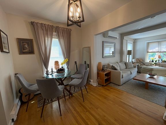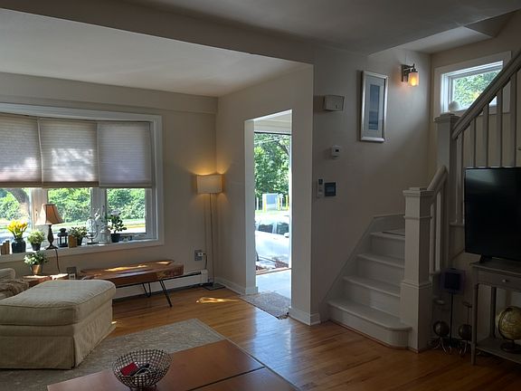 Bright, renovated, and modern home with a cozy feel for rent. First floor features an entry foyer, living room, dining room, updated kitchen, den/office with backyard access to deck, and a full bath. Second floor offers 2 bedrooms and a full bath. Unfinished basement with laundry and plenty of storage. Detached garage, long driveway, landscaped yard. Walk to downtown, schools, and public transportation. Available furnished for $4,500/month. Requirements: Lease application, NTN report, proof of income. Lawncare is included. Tenant pays utilties and snow removal. Lawncare is included