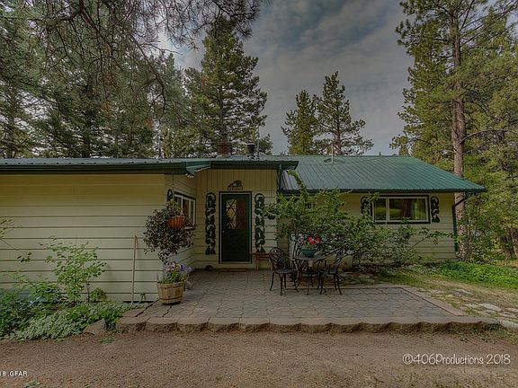 Come home to the most beautiful setting, bordered by Forest Service on 3 sides. Find peace, tranquility, a babbling creek and a pond with birds chirping and wildlife all around you, under mature, towering trees. Enjoy a 2400', well-maintained home, a guest house, a three car garage, a handsome ''sauna cabin'', a big garden house, a tree house AND a garden! There is so much here, you have to see it to appreciate everything included in this listing. This is a recreational paradise, but with year round and quick, commutable access to nearby Helena. The home is a ranch over basement with 3 bedrooms, a bath, living, fireplace dining, kitchen and big deck on the main level. Downstairs is recently remodeled with an enormous bedroom with big windows, a bathroom and a recreation room with a fireplace, bar space and includes an antique Monarch stove. All buildings have steel roofs. Garage is three car with a work bench and garage door openers. Guest house is near the home and has a lot of space, a wood stove and loads of potential. The "garden house" was once the Lombard Post Office and was moved to the property. It is also a large space, is wired for 220 and it has lots of potential for other uses, too. Big, healthy garden is fenced and includes the"garden house". The sauna cabin/house is newer and exudes a ton of charm. Imagine a day out hunting on the neighboring Forest Service, in the snow, and coming home to a toasty warm sauna! The tree house, horse shoe pit and hammock are a great attraction for all ages. Pond and bridge over creek add to the appeal of this special place. Could easily be a horse property. Newer windows in the main house. Main house has an insert upstairs and a wood fireplace downstairs. Laundry in basement with double laundry sinks. Well and newer septic. Seller has special use permit to take water from Forest Service spring. New buyer will have to apply for permit. All representations to be verified by buyer to their own satisfaction. Without question, this rare and amazing property is worth seeing, in person.