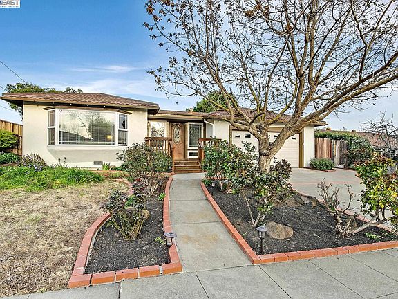 Charming Mid-Century expanded rancher to 2,008 square feet, tiled entry leading to huge living room with bay window and dining room (open design) with hardwood floors. Large kitchen with abundant cabinet and butcher block laminate counters, new vinyl low maintenance laminate flooring. Family room is highlighted by brick fireplace with built-in bookshelves on each side and vinyl laminate floors, slider to back yard. Three spacious bedrooms all with original wood floors, owner suite boasts wall of closet space plus a walk-in closet, additional office area and lovely remodeled bath with custom tile work, soaking tub plus generous shower. The private backyard features brick patio, perimeter planting areas, raised garden beds. Additional amenities: brand new exterior paint, dual pane windows and sliders, no carpet, real wood, laminate and tile. Walk to elementary school and easy access to middle and high schools. minutes to downtown and wonderful Livermore Wine District. Pest work completed and roof repairs ordered.