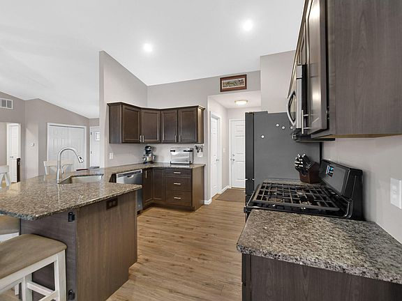 Classy with Country Livin' . This beautifully built ranch home will definitely catch your eye. From the granite counter tops to the patio covered deck with an extra concrete patio to meet your outdoor needs. The 3 car garage is a great fit for all those country livin' toys. The main bedroom has a walk in closet and attached bathroom featuring a double sink vanity and a walk in shower. This home also features a whole-house water softener system.