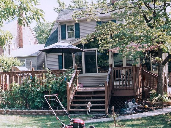 Well maintained Cape Cod. Four season sunroom/family room leading to a large deck. Full bath and room on the main level could be a den or bedroom. Formal dining room and table space kitchen featuring granite counter tops and pantry. Stainless steel appliances plus washer and dryer convey. Newer roof, furnace and central air. Tilt windows. Two car garage with alley access plus a concrete driveway in front. Some hardwood floors. Outhouse serves as a tool shed plus another utility shed. Some of the yard is fenced and some is a stone wall.