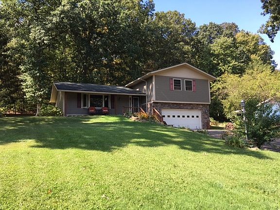 This Valley Grove tr-level home has much to offer! For starters it has a cozy lower level family room that features a stone wood burning fireplace, a den,and a laundry room with 3/4 bath. The main floor has a remodeled kitchen with a dining area and a dining room, a very large living room makes entertaining comfortable. The upper level has 3 nice sized bedrooms, a full bath, as well as an extra large room with access from the master bedroom or from the lower level that could be a game room, office, den, library, etc. The possibilities are endless! This home could use a few finishing touches inside to make it absolutely gorgeous! The outside is completely done with nice roof, vinyl siding, windows, paved drive, french drains, and more. Enjoy the wooded views off the back patio while cooking on the bbq!