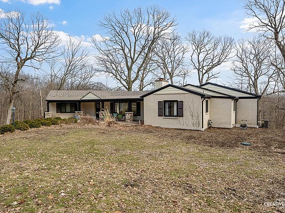 Welcome to Mid-Century Modern Elegance, thoughtfully reimagined. This beautifully updated MCM home is the perfect blend of timeless architecture and modern function. Set against the tranquil backdrop of Hickory Creek, every square inch of this home has been thoughtfully reworked with care, craftsmanship, and quality materials. Not a single expense was spared. Stepping inside you are greeted by a striking stone fireplace in your formal dining space- just across from the kitchen. There you'll find a completely remodeled kitchen (2024) featuring quartz countertops, ceiling-height crown molding cabinetry, a ZLINE range and sleek design details that complement the home's clean lines. A dry bar with a beverage fridge in the living room adds a nice touch of hospitality. All three bathrooms were tastefully redone in 2024, bringing elevated style and function to every space. White oak flooring flows through the main level, adding warmth and cohesion, while new Pella windows (2023) invite natural light throughout. Bedrooms are finished with fresh carpet (2023) and solid knotty alder doors throughout lend a rich, organic feel. This home features two wood-burning fireplaces, a newly tiled sunroom (2024), and a main-floor laundry room with ample cabinetry and a wash sink-designed for everyday ease and practicality. Mechanical updates offer peace of mind: new furnaces within the last 3 years, A/C units replaced in the last 5, a new water softener, water conditioner, and iron filter. The well has been completely upgraded with ALL NEW piping. Roof, gutters, soffits, and front posts were all completed in 2024. The outdoor deck and railing were also redone this year(2025). Outside, nature surrounds you. Deer roam the property year-round, and the view from the primary suite overlooks the peaceful beauty of Hickory Creek. It's tough to put into words how unique and inviting this property is- you just have to see it for yourself! Schedule your private showing today and prepare to be amazed. This is more than just a renovation-it's a respectful, refined revival of a true mid-century gem.