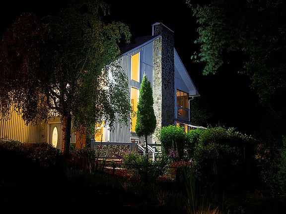 - Exterior Finish: Stone, Wood Siding