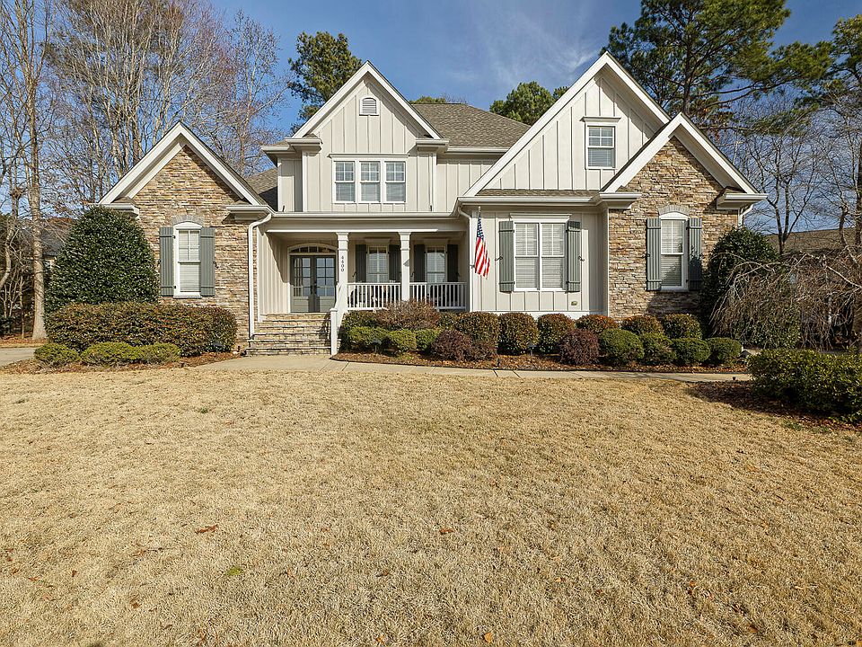 Absolutely stunning, beautifully updated, former Parade Home on a peaceful, fenced, cul-de-sac lot! Welcoming front porch. Gleaming, site finished hardwood floors. Dream kitchen with gorgeous quartzite countertops, high end appliances, plus island, desk, pantry and breakfast area. Large/open family room with custom built-ins. Amazing formal dining room with wainscoting, custom detailed molding at tray ceiling + butlers pantry. Opulent, 1st floor primary bedroom. 3 bedrooms up + huge rec room + office/flex space with double skylights. Walkup attic. Scenic screened in porch + patio with stone, exterior fireplace. Pride of ownership shows in this 'Move In'' ready home!