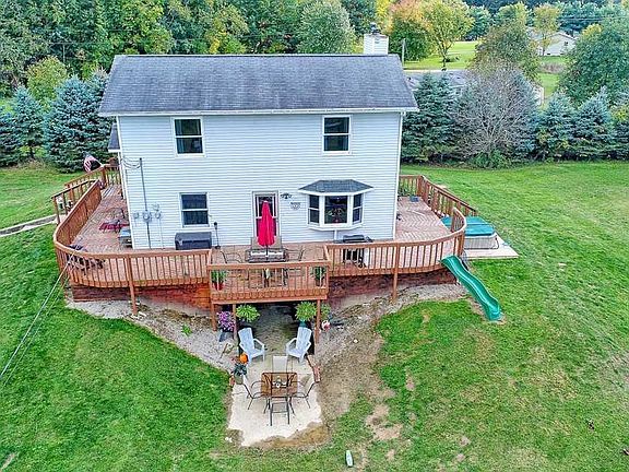 Looking for a hobby farm set up or less populated surroundings? Don't miss this 4BR 3bt home on just over 4 acres. Conveniently located just north of Portland, an easy commute to Grand Rapids, Lansing, & most of Mid-Michigan. Home features wrap around elevated deck on 3 sides with views of the property. Living room will accommodate large furniture & flat screen on wall. Updated kitchen with center island is just right sized. Kitchen & dining have vaulted 2 story ceiling. Main bedroom suite is spacious with access to main floor laundry & full bath. Another bedroom on main floor could be home office. Fiber internet! 2 BRs upstairs will full bath. Walkout basement has giant rec room, 2 storage rooms, plus full bath. For the farm 30x40 pole barn with 16x70 lean to. Almost all property fenced!