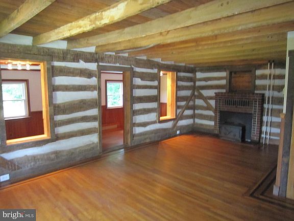 13.98 acres on the Monocacy River w/paved boat ramp and picnic pavilion, too! Home shows well and features some of the original log walls, built in early 1800's, large open kitchen/dining area, living room w/brick fireplace, bright office off living room. Garage is 60x30 (w/electric); can easily accommodate 6 vehicles.