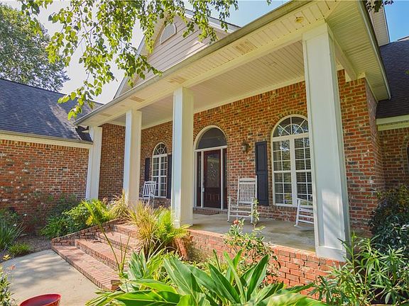 Beautiful home in Bella Sara! Are you searching for an elegant, stylish home in Saraland? Here it is! Welcome home to a large corner lot, pretty landscaping, and graceful brick front steps up to the open front porch. As the leaded-glass front door swings open you'll be impressed with the rich colored hardwood floors running throughout the home. Soaring ceilings, curved doorways, and stately columns define the formal dining room on the left, the office/sitting room on the right, and the family room in the center. The gas-log fireplace is certainly an appealing focal point. Stroll through the den to the kitchen and kitchen dining area on the left. There you'll enjoy seeing the gorgeously finished light-colored cabinets, dark granite countertops, well-matched backsplash tile, stainless-steel appliances all sitting on 18" tile flooring. Cooking and entertaining for family and friends will be so enjoyable here! On the left side of the house is the spacious master suite painted a peaceful blue and crowned with a beautiful tray ceiling. The master bathroom is spa-like with granite double-sink vanity, a generous amount of rich colored wood cabinets, soaking tub and very attractive lighting fixtures. On the right side of the house are 2 bedrooms and 1 full bathroom. Upstairs is a bonus room or bedroom with a half bath. Make sure you visit the best "room" of the house - the screened in back porch. It has plenty of room for rocking chairs, comfy table & chairs and gas grill. The extra garage at the end of the driveway is ready for 2 cars or a boat and lawn equipment. The house has 2 AC units which were replace this year. Please make an appointment today to visit this splendid home!