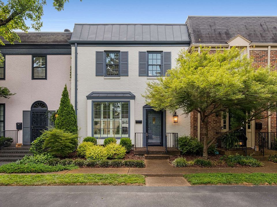Tucked away in a private community in the heart of Green Hills, this designer-renovated townhome combines elevated style with a sought-after and rarely available split-bedroom floor plan featuring two oversized primary suites. Offering 1,848 square feet of newly updated living space, two spacious bedrooms—each with its own en-suite bath—high-end finishes throughout, a convenient second floor laundry area, open concept kitchen and living room, main floor powder room and two designated parking spots. The living space was thoughtfully reconfigured to create a seamless, open-concept flow—ideal for both entertaining and daily life. A newly remodeled showpiece kitchen anchors the space, featuring custom cabinetry, sleek quartz countertops, a two-tone island with counter seating, paneled refrigerator and dishwasher, and top-of-the-line Thermador appliances. The adjoining living room impresses with a statement fireplace boasting floor-to-ceiling herringbone tile surround, bespoke built-ins, and designer lighting. Notable upgrades include top-of-the-line finishes throughout the home, new flooring, custom window coverings, new water heater, and new Pella sliding doors and windows. Outside, enjoy a private fenced patio with large storage shed, plus two dedicated parking spaces. Located just minutes from fine dining, Lipscomb University, and the Mall at Green Hills, this turnkey residence offers luxury living in one of Nashville’s most coveted neighborhoods. HOA includes grounds maintenance, pool, and tennis club.