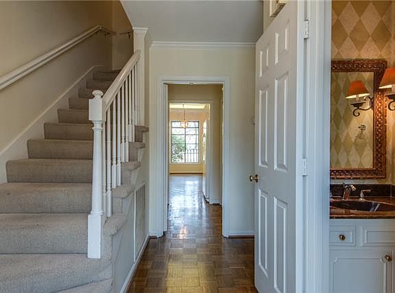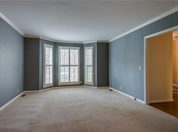 Living Room & Master BDRM w/ Bay Window,Eat-in kitchen w/garden window,Plantation Shutters. Parquet floors in kitchen, entrance foyer,hall&Den.All appliances remain including refrigerator,W&D.Beveled glass french doors to Patio.Built-in shelves&cabinets.