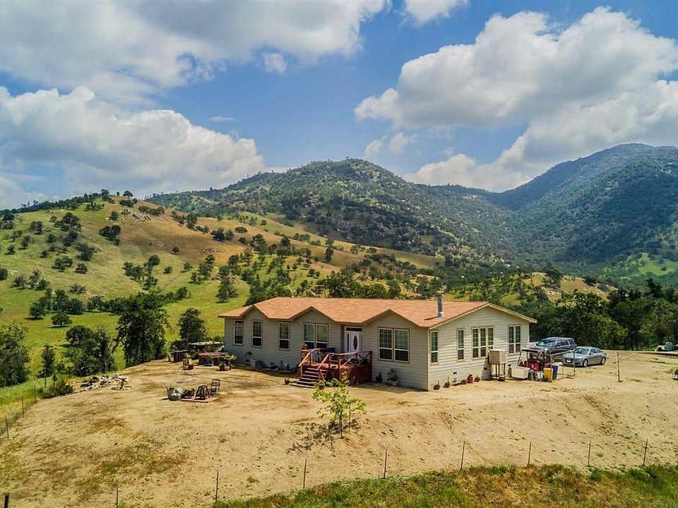 Incredible view from your own 155 acre mountain top- Blue Mountain. Beautiful, picturesque, peaceful and serene with cool breezes and views of the entire valley from your windows. Sit in the backyard around the fire pit and relax overlooking the views. Property is fenced with 3 separate & level pastures, pole barn, corrals, seasonal creek, springs, Oak trees, good well, storage sheds, sea train and cattle guards. Be King of your hill in the main house featuring a 2006 manufactured home with 2,700 sqft., 4 bedrooms, 2 baths, refrigerator, washer & dryer included. Two other homes on the lower part of the property have 2 bedrooms and 1 bathroom; both have a tenant. Great horse/cattle property w/plenty of feed (support 18-20 head) or make it a retreat to get away from it all. Only 40 minutes to Bakersfield or Porterville. Paved county road. Private and gated. Property can be parceled out, not in the Williamson Act.