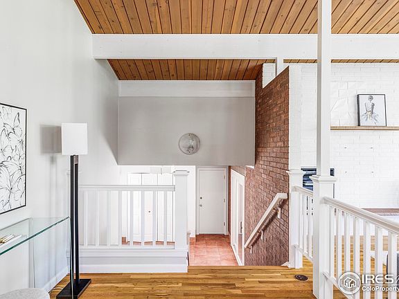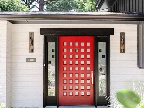 Mid-century modern design flourishes in this Frasier Meadows home. Mature trees and picturesque landscaping envelop this property poised on a 1/3-acre lot. A bright entry with tiled flooring welcomes residents into an open-concept layout flowing with tongue-and-groove ceilings and wood flooring. Illuminated by skylights, the remodeled kitchen boasts high-end appliances and a center island. An expansive wall of windows draws natural light into a dining area and living area anchored by a fireplace. The primary suite showcases a large walk-in closet with built-in shelving and a tranquil bath with a walk-in shower with dual showerheads. Downstairs, a garden-level hosts a spacious rec room with a fireplace and two additional bedrooms. Escape outdoors to a treed park-like backyard surrounded by privacy fencing. Imagine serene evenings spent relaxing on a large patio overlooking a grassy lawn. This home sits in a coveted Boulder location moments from Admiral Arleigh A. Burke Park.