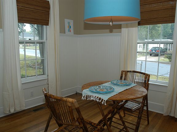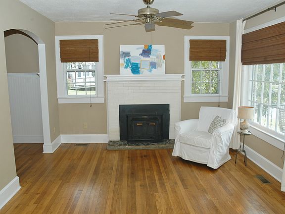 So charming! Updated kitchen and bath. Beautiful hardwoods throughout with arched opening to DR. Designer paint colors and window treatments in every room. Separate laundry room. Relax on the covered front porch with 2 ceiling fans! Large corner lot, great for outdoor entertaining, fenced back yard with storage building and the mature trees offer plenty of shade. Room for a garden. The vintage boat pictured is yours! Close to shopping and restaurants. Home warranty included. Don't miss this one !!