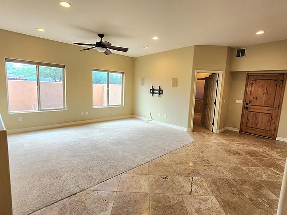 MOVE IN READY 4 bed/2 bath home in convenient central Tucson! Upgrades everywhere in this open floorplan corner-lot property! Granite countertops throughout. Open kitchen with island, GE Profile Appliances, gas range, island with breakfast bar, wine/beverage cooler, hardwood cabinets, and large pantry. Home has 21-inch travertine tile flooring in all the wet areas and dining room, carpet in living room and bedrooms. In-wall speakers for surround sound! SPACIOUS Master Suite with walk-in closet and dual sinks. 4th bedroom is a great den/office. Recessed lighting throughout the home. 5-ton Ruud a/c unit installed 4/2022. Enter through an AMAZING courtyard with a built in firepit and sitting area. A must-see home! Call to schedule your showing today!
