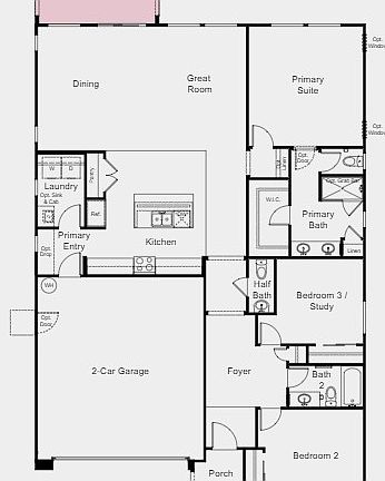 REPRESENTATIVE PHOTOS ADDED. January Completion! Life thrives in the Hydrangea, a beautifully designed single-story floor plan. Step through the porch into the welcoming foyer and hallway. To one side, you’ll find a convenient two-car garage, while the other side features a bedroom, a versatile study perfect for working from home, and a full bathroom. At the heart of the home, the spacious great room flows into a casual dining area and a modern kitchen with a large island, ideal for gathering and entertaining. Nestled at the back of the home, the luxurious primary suite offers a serene retreat with a walk-in closet and a spa-like bathroom featuring dual vanities. Structural options include: super shower at primary.