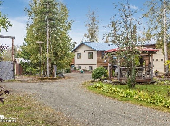 Looking for a spacious home with privacy, park-like setting, View & great commute location? Here it is! Great kitchen for entertaining, spacious living room w/wood stove & office nook. Formal dining room & enclosed deck ''Alaska'' room w/bar! Huge garage/shop, workshop & indoor motor home storage! Green House w/fenced rich soil garden area. Gazebo w/BBQ grill & power. Rv/Toy Parking and More!