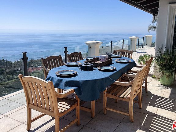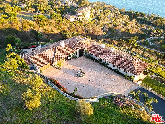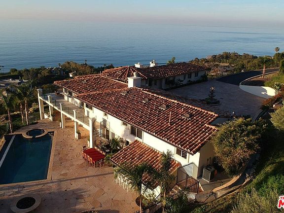 Best priced Malibu estate of this size and these views next to brand new estates priced over 14 Million. Watch the Virtual Tour and see for yourself. The residence, complete in 2007, is only 1.1 miles (1.77 km) from the beach, sits behind gates and has nearly 6400 sq. ft. with a 4 car garage and additional parking in the courtyard. This large home is equipped with an elevator, 2 kitchens, 2 dens (with built in bars), 5 zone AC, an office, and large walk-in safe. A separate 2 bedroom guest apartment can be accessed from the driveway. The patio, with impressive coastline views of Point Dume, has an infinity pool, spa, fire-pit, out-door kitchen and waterfall. The 5+ acre property has no power poles or lines in the ocean view that even in Malibu is a rare find. There are fruit trees and raised vegetable gardens. Have a jet, why not fly to Camarillo airport instead of Los Angeles! It will be a beautiful 22-mile drive along the most filmed California Coastline.