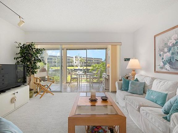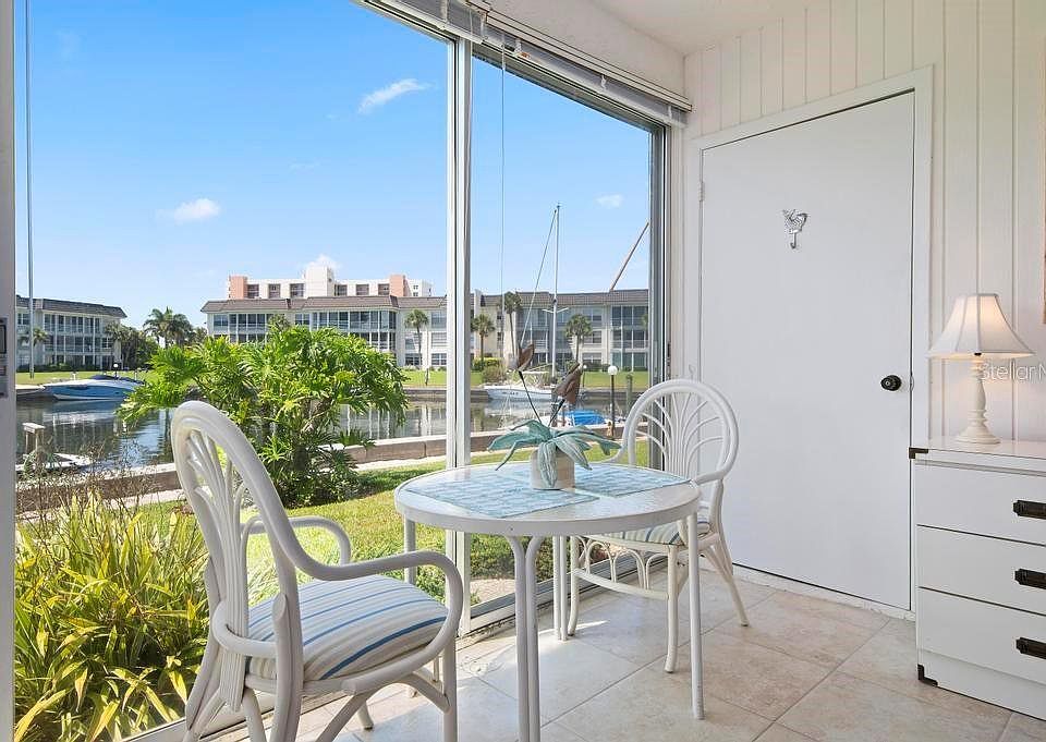 Backup offers are considered. Welcome to an affordable paradise with soothing water view from this bright well maintained 2-bedroom 2-bathroom residence located in the resort like Community of Longboat Harbour. This unit is a convenient ground floor residence with assigned covered parking in front. Glass-enclosed Florida room with sliding doors opening to the waterfront walkway and boat docks. The kitchen has a wide opening to living room with New A/C installed in 2021. Offered Furnished, this is a great opportunity to invest at this low offered price. Bring your boat or swim on the deeded beach just across Gulf Of Mexico Drive. Enjoy all the amenities Longboat Harbour offers: Four heated pools, tennis/pickle ball court, spacious fitness center, clubhouse, bike/kayak storage, billiard room, fishing station plus more. The deeded beach access is located at 4415 GOM with parking, pavilion with shower facilities. Schedule your tour. This won't last long!