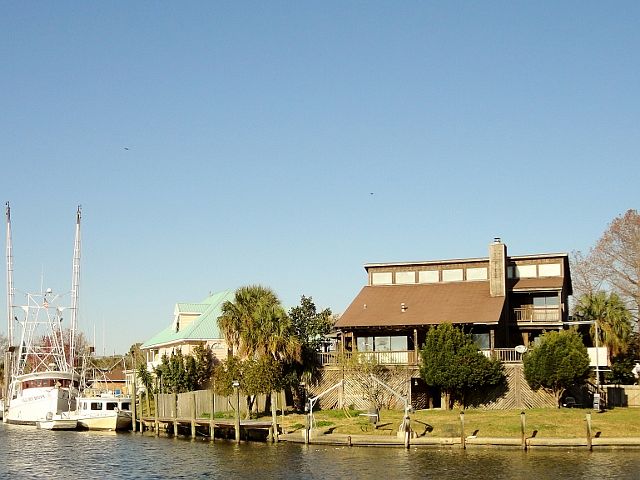 REDUCED !Opportunity to purchase a one of a kind home! Home needs some TLC !Open floor plan on second floor w/vaulted ceilings,kitchen w/granite countertops,wetbar and fireplace in den.Three bedrooms 2.5 bath with Master on second floor w/Marble bath area with spa tub. Master bedroom features fireplace and door leading to balcony. Third floor has 2 large bedrooms w/large Marble bath with spa tub and shower and large closet.Third floor bedroom has a fireplace.Inground swimming pool with slide,boat slip with hydraulic lift dock and storage on first floor and 2 car garage.This is an Estate Sale and seller is motivated.No repairs made by seller.Flood insurance is assumable and $400 a year.Roof replaced in 2012.