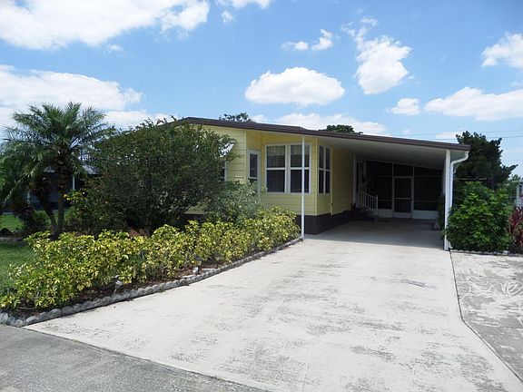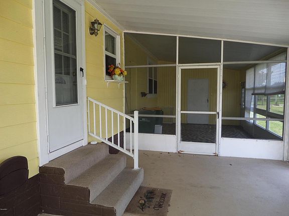 YOU OWN THE LAND!!! You will Love this Extremely Well Maintained home. Tile and Wood Laminate flooring throughout. 2Bedroom, 2 Bath. Spacious living room with designer ceiling fan.Formal dining room with built-in china cabinet. The Roomy Kitchen has a large pantry, double sinks with disposal, flat top stove, dishwasher, fridge with bottom freezer and ice maker, lots of cabinets and counter space. Separate room off the kitchen to use as den, home office, craft room or what ever you want. Large sun room off the living room through sliders, with ceiling fan, fully screened, newer glass windows, door to outside and wall A/C. Master bedroom has Huge walk-in closet with mirror doors. Master bath has convenient walk-in shower.