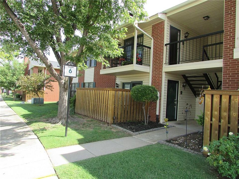 Wonderfully taken care of, beautiful, ground floor condo! This 2 bedroom condo in a gated community has many updates including upgraded tile in the bathrooms, extended pantry with room for FULL SIZE washer and dryer, brick floor in kitchen and entry, new light fixtures, crown moulding throughout, and newer formica countertops in kitchen along with updated backsplash. The pool area has men's and women's bathrooms with showers and several pergolas for entertaining. Full maintenance of the grounds with cameras around the facility. New dishwasher was just installed. Assigned covered parking right in front of the unit. Really close to Penn Square Mall and Downtown OKC for shopping and entertainment. Must see before it's gone!