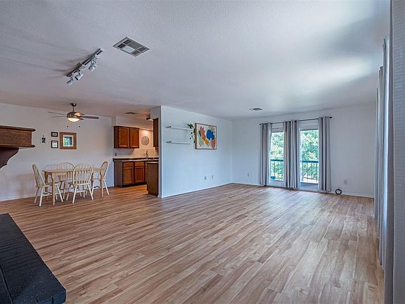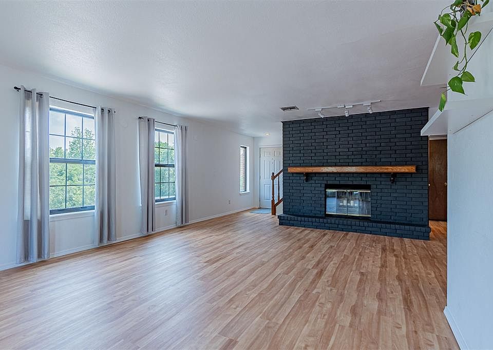 The living space is warm and welcoming, centered around a striking painted brick fireplace and surrounded by LARGE WINDOWS that flood the room with natural light. Just off the living area, enjoy a morning coffee or afternoon shade on the east-facing private balcony overlooking a gorgeous tree-lined view.