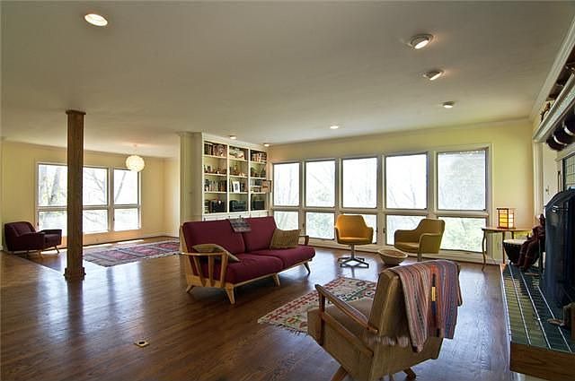 This very comtemporary lightfilled house will turn your head. The full dry basement has seveteen foot ceilings, and a concrete floor. It is currently being used as an artist's studio. Beautiiful walkway through the woods. 2 car garage.(Uploaded Saturday)
