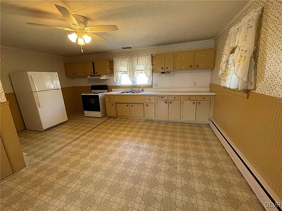 Looking for a detached home for under $300,000? WOW, what a find! This terrific house will make a wonderful home. Nice size rooms, a wide open country kitchen to create as you wish. Place the table, add more appliances or redo the flooring this is a great area to make it your own. Incorporate the sun room as a breakfast nook or add outside area for even more dining options. Hardwood floors recently exposed in the living room and bedrooms depict what a showplace this can be. Full bath on the first floor. Great size basement already finished or add rooms or even an additional bath if you like. There's an outside entrance and great unfinished storage area as well. The backyard is incredible and an oversize 2 car garage with a stove pipe flu ready for any hobby you have. This is an incredible buy so make an appointment today and ask your agent about the auction details.