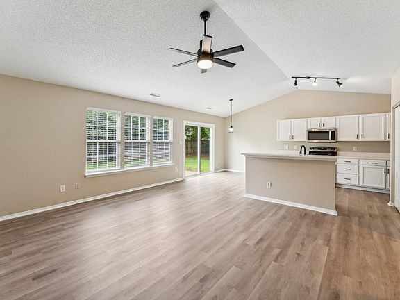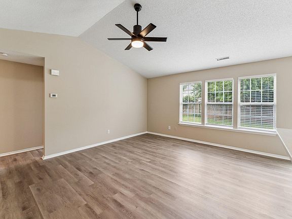 This charming 3-bedroom, 2-bathroom ranch home offers an open floor plan that effortlessly connects the kitchen, dining, and living areas, all accentuated by cathedral ceilings that create an airy, spacious feel. The bright dining area overlooks a private, fenced-in backyard, ideal for seamless indoor-outdoor living. The main bedroom serves as a tranquil retreat with a generous walk-in closet and abundant natural light, while the two additional bedrooms provide both comfort and flexibility. With fresh paint and brand-new LVP flooring throughout, the home has a contemporary, refreshed look. Tucked away at the end of a quiet cul-de-sac, this home provides easy access to Buffaloe Road Athletic Park, Triangle Town Center, and major highways like I-540, US-401, and US-1.