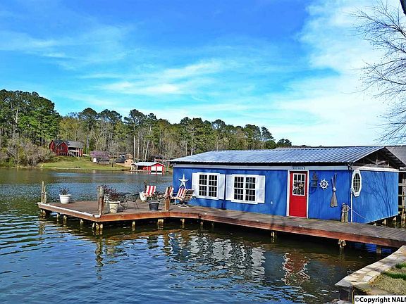 Waterfront Cottage at East Lake! 2 Bedroom / 1 Bath, 2 Slip Boat House with Electric Hoists, seawall, deep water, 150+/-ft of shoreline, lake side porch and patio, lots of tongue & groove ceilings, vaulted exposed beams, masonry fireplace, concrete drive with lots of parking space. This really is a rare find on Lake Guntersville! Lots of charm and character on an awesome lakefront lot. Call today and see it for yourself before it's gone!