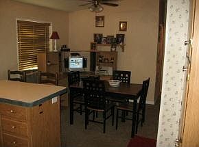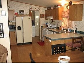 1998 doublewide with 1152 square feet on a stemwall. Solid surface counter tops in master bath. Custom cabinets in master bath; wood floors in kitchen. Has work shop in back with AC wall unit and windows on concrete foundation. Property has 4ft fence in front and 6 ft in rear with privacy slats. Evaporative unit is ducted throughout house.