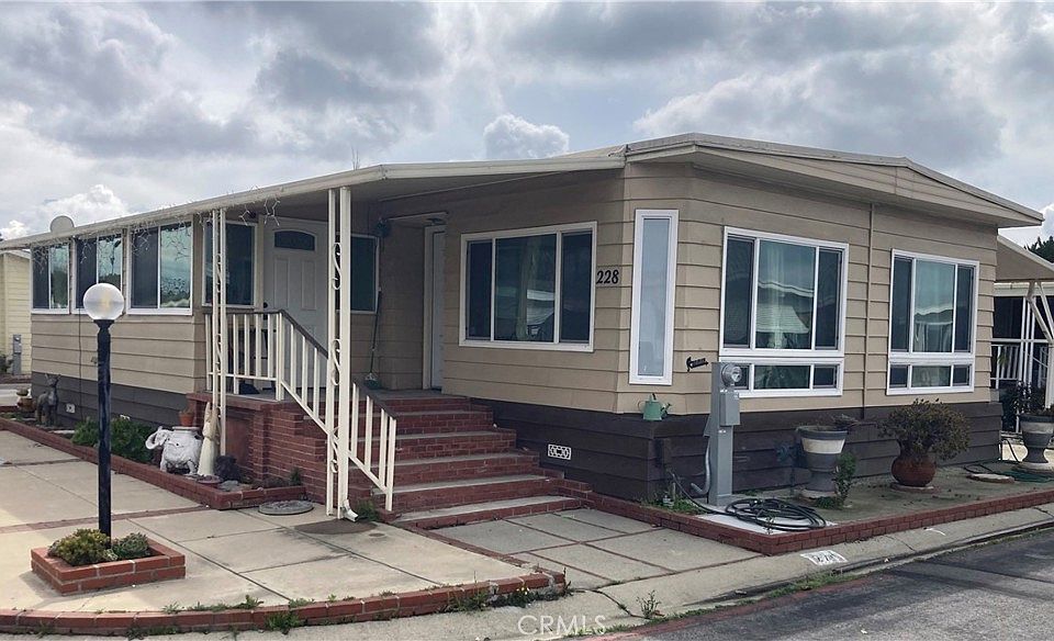 Remodeled 1970's mobile home in the family friendly Lamp Lighter MH Park in the city of Chino. Dual pane windows, Enclosed oversized patio for a nice hobby/work room or make additional bedrooms. Various parking spaces on the lot. Local community amenities include sparkling pool, jacuzzi, and sauna! Shaded picnic areas with BBQ grills and ample common spaces. One of the lowest space rents in the area.