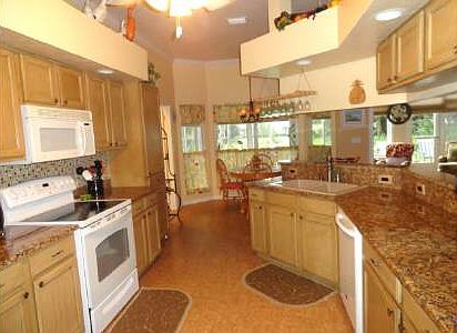 This home will allure you with it's warmth. Lovely colors on all of the walls. Solid hardwood floors throughout, with flawless & seamless cork flooring in kitchen. Granite surfaces & solid hickory cabinets are plentiful in this eat in, family friendly kitchen. Dining nook in kitchen has bay windows. Display all your collectibles on the plant shelves. High volume ceilings w/ crown molding. The great room has 2 sets of double french doors which open to the 360 ft. florida room which is under air & has tall wrap around sliding glass windows w top of the line thermal roman shades.French doors in the large master wing open to a screened porch with a hot tub (which stays!) All closets have automatic lights. Skeeter beater screen on garage door. Concrete patio out back for barbecues. Roof 3 yrs new. New irrigation pump w/ 4 automatic zones. Rated above average construction.