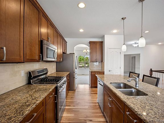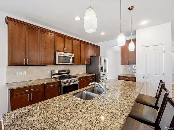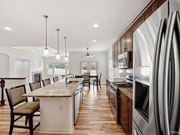 This was Listing Broker's own personal residence..."of all the homes I'd seen, this was THE ONE for me as a mature adult, for a quiet, semi-gated, maintenance-free exterior, paired patio home community to be my forever home, but then life threw me a curveball." 3 bedrooms 3 bathrooms paired home with lots of upgrades. Move-in ready, renovated this past month; refinished wood floors, new carpet, new interior paint throughout including ceilings, and new toilets. Main level has 2 bedrooms (owner's suite plus a 2nd ideally suited for a home office), formal dining room, kitchen, living room with gas fireplace. The elegant kitchen features granite counters and oversized granite island with built-in sink, dishwasher, and galley island (bar-style) seating; chairs included; stainless steel appliances including Samsung Freestanding Gas Convection+ Range with WiFi and No-Preheat Air Fry installed June 6, 2023. Main floor owner’s suite features a five piece bath and huge 14+ft walk-in closet with custom built-ins. Large, nearly 15ft x 8ft mud room/laundry room with built-in utility sink, custom cabinets, and Samsung Extra-Large Capacity Washer and Dryer Set included. Private east-facing covered patio just off the breakfast dining area is perfect for having morning coffee as the sun rises. Professionally finished basement features a Great Room with in-wall speakers for Home Theater & Audio, a Billiards/Pool Table with Accessories included, a wet bar with mini-fridge, a 3rd bedroom, a full bathroom, and a large Utility/Storage Room. Low maintenance exterior; Fairfield Village at Quincy Reservoir Owners Association takes care of the landscaping and snow removal! South-facing garage+driveway, and covered west-facing front porch for evening sunsets. Only 1 mile to Quincy Reservoir, 3.1 miles to 470, 3.9 miles to Parker Road/Colorado Highway 83, 5.5 miles to I-225, and 5.2 miles to Southlands Shopping & Dining. New roof in April/May 2024.