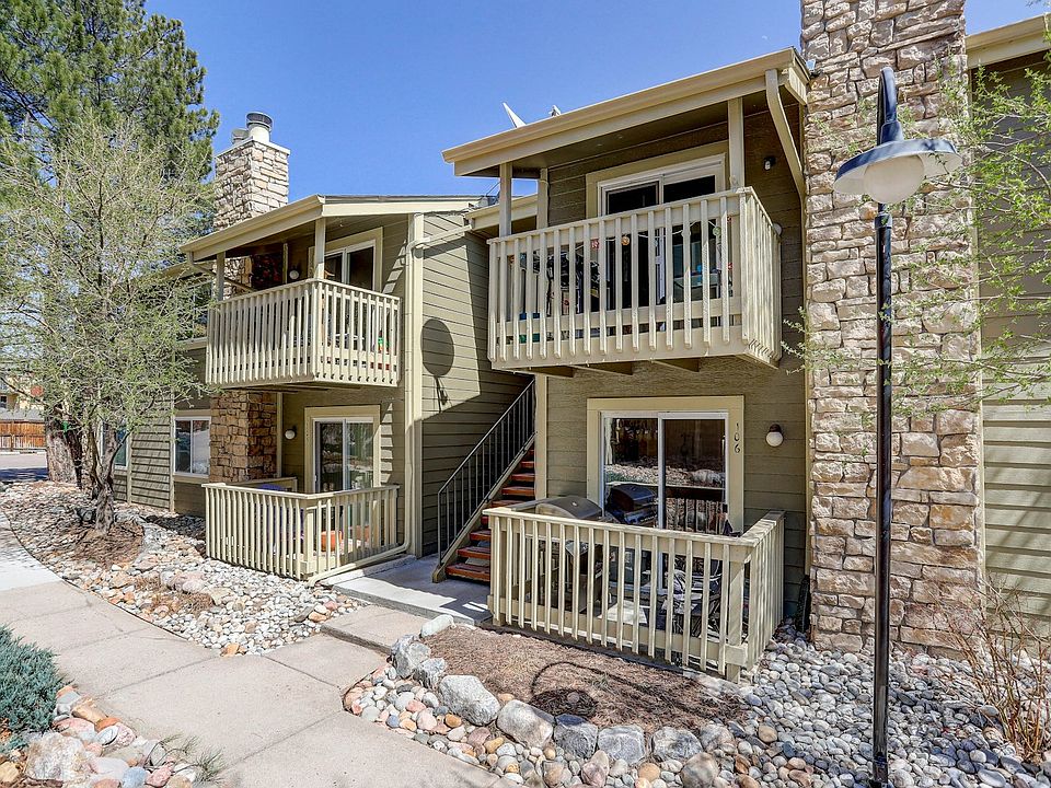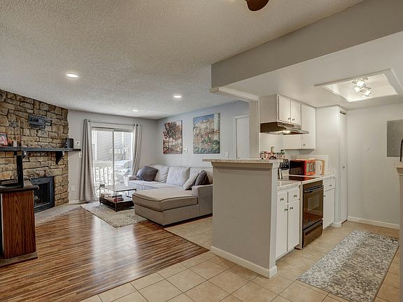 Low maintenance GROUND floor condo in the Denver Tech Center. Master bedroom has a large closet and en-suite bathroom. Additional bedroom with a full hallway bathroom. Newer tile and wood vinyl flooring, all kitchen appliances included, central A/C and in-unit full sized clothes washer and dryer. Special features include a wood burning fireplace, ceiling fan in dining room, and open & bright floor plan. Condo has ample parking for you and your guests. Close to swimming pool and lush green sitting area and tennis courts. Located minutes to I-25, I-225 and the Belleview light rail station.