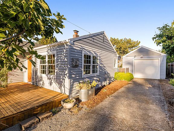 Shining bright at this small but mighty 1950’s gardener’s cottage on a quiet block in Foster Powell. This west facing property proves quite happy with its vibrant + innovative landscaping–an impressive collection of Manzanita, Eucalyptus, Pineapple Guava, Asian Pear + Fig trees. Agave, Yucca, Witch Hazel, Flowering Current–so many varieties have been established here. Fit with two rain gardens, xeriscape front yard, you will want to wander a while! Concise + cozy with 2 bedrooms, 1 bathroom, original oak hardwoods throughout living + bedrooms. Sunshine drenched living room with a toasty modern gas stove. The kitchen is an open feel w/ gas range, hood, corner windows and space for a work table/breakfast bar. Laundry off the kitchen, doubles as a mud + storage room with access to the backyard. The fully fenced backyard features a hardscape patio, grass + fun + eclectic gardens. From the back patio you can access the detached garage with a work bench, power and updated garage door. You won’t want to miss the sunset views from this house! Such a fantastic jumping off point to all things FoPo. Great food, markets, parks + transit.