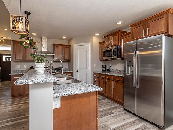 Almost new, well constructed huge home in the Rockfire development offering all the amenities of the Clubhouse, gym, indoor pool, and adjacent to the trails and paved paths of the Lake Shawnee Park complex! Main floor living with the laundry adjacent to the huge primary bedroom ensuite with walk-in shower and walk-in closet! The open living floor plan with the large living room attach to the eat-in kitchen with nice corner pantry and flowing to the heavily windowed dining room! Another bedroom and full bath on the main before you head downstairs to the central family room, 3 more huge bedrooms and another full bath. Great walk-out patio enclosed deck off of the main floor for your morning coffee! All the space you need for all of your stuff and all of your people!