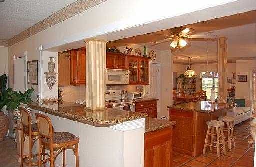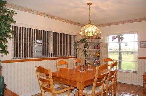 Gorgeous home on 2.5 acres in exclusive Country Club Ranches. Beautifully landscaped, electric front gate, fish stocked pond w/dock and fountain. Separate warehouse w/workshop and storage. Outdoor party area,Key West style bar and sinks. Kitchen has island, ample cabinets, granite tops and chef desk. Huge Family Room w/built-in entertainment center and TV w/surround sound. Enormous Master w/private screened-in patio, large Master bath has his/her vanities and Jacuzzi tub. Seller Financing Available, No Bank Needed!! Interior Features Cable Available, 8 Ceiling Fan(s), Formal Dining, Snack Bar/Counter, Automatic Garage Door Opener, Dishwasher, Dryer, Electric Range, Electric Water Heater, Icemaker, Microwave, Refrigerator, Separate Freezer, Washer, Water Softener/Filter, Carpet Floors, Ceramic Floor, Tile Floors, Furniture For Sale, Pantry, Roman Tub, Walk-In Closets, Dual Sinks in Master Bath, Whirlpool/Spa in Master Bath, Blinds/Shades, Single Hung Metal Window, Single Hung Wood Window, Sq.Ft. is 3300 Exterior Features Septic System, Exterior Lighting, Extra Building/Shed, Fence, Hurricane Shutters, Outdoor Shower, Patio, Screened Patio/Porch, Sprinkler, Well Water, East Exposure