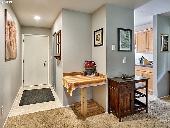 Adorable 2 bedroom, 1 bath condo in a fantastic area! Located in a quiet condo community near Capitol Hwy & Barbur Blvd, with easy access to I-5 and public transportation making for a dream commute! Live comfortably in this 921 sqft home with custom woodworking and upgrades, backing to beautiful greenspace. Take in the view outdoors from the built-in eating area overlooking the sunken living room. Sliding door leads to a covered, gated patio and plenty of open space! Enjoy the community pool in the summertime. A perfect starter home!